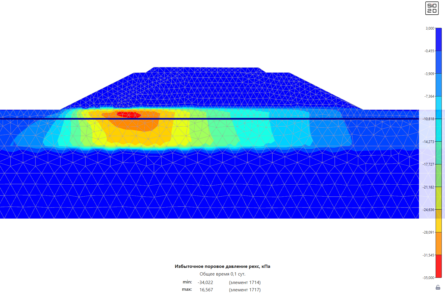 Тип расчёта позволяет задать время, в течение которого при изменении напряжённого состояния в расчётной схеме будет генерироваться и рассеиваться избыточное поровое давление.
