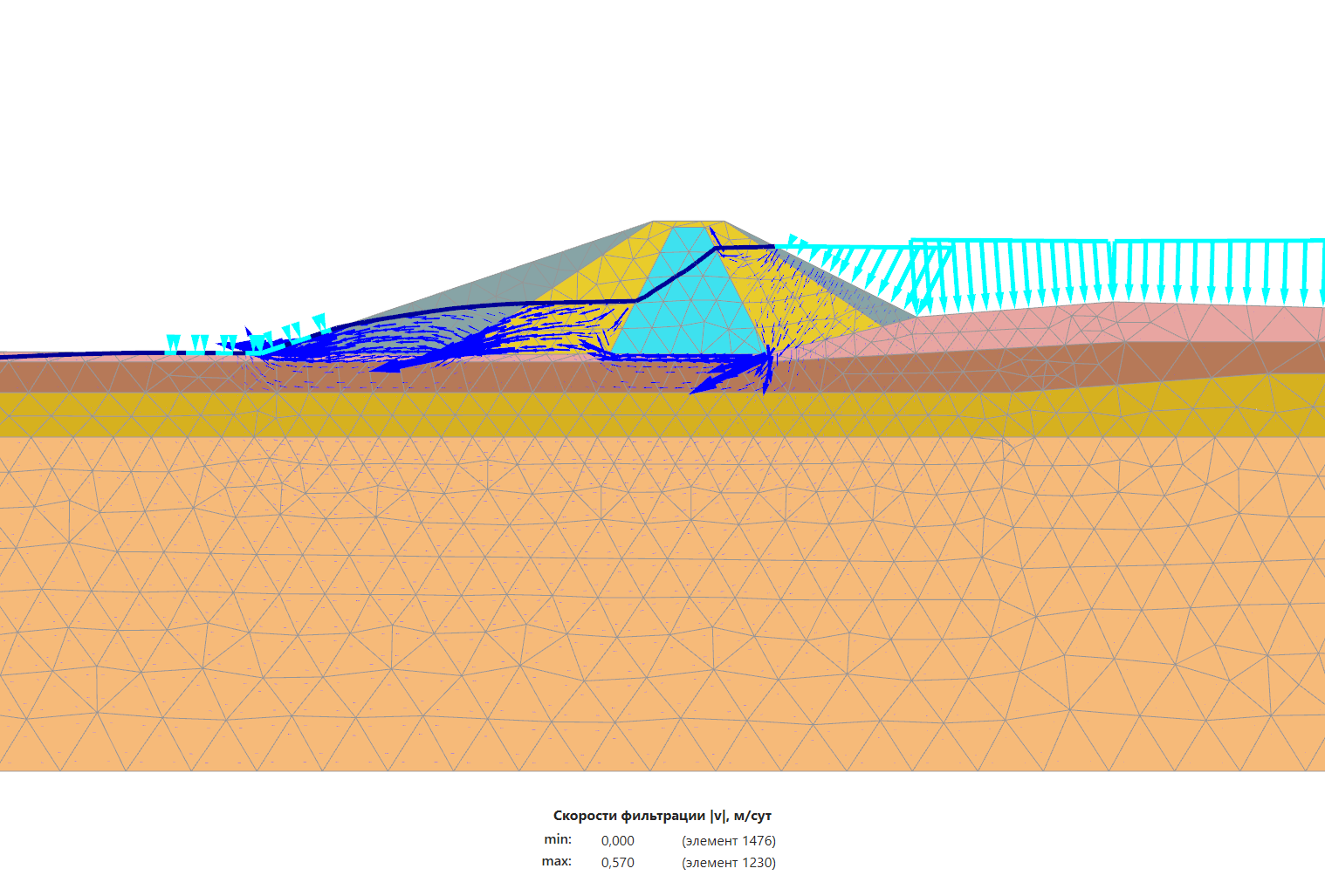 Стационарная фильтрация или установившееся движение водного потока показывает результаты для момента времени, когда изменение порового давления не происходит, то есть достигается установившееся течение.