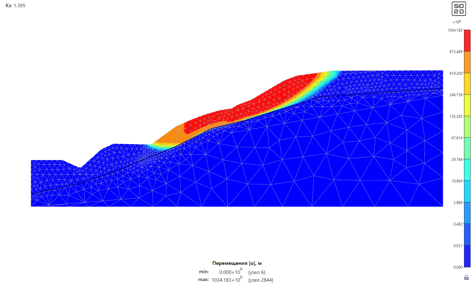 Результатом расчёта являются как деформации, так и напряжения, в том числе касательные. Это расчёт гравитационного нагружения.