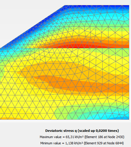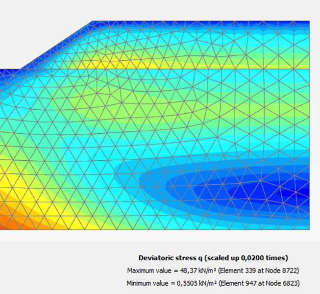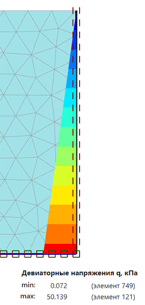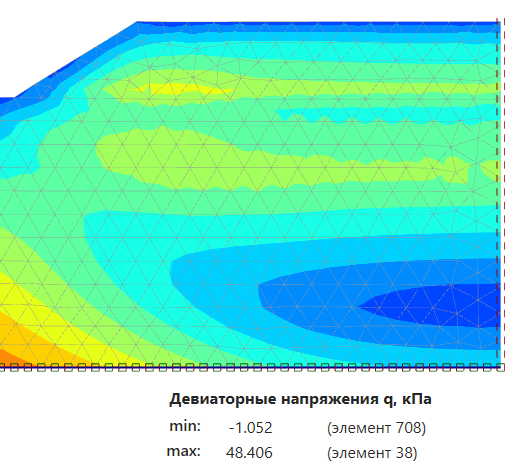 Девиаторные напряжения на первой стадии в PLAXIS 2D