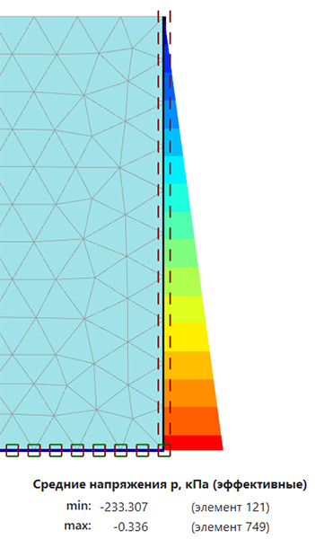 Средние напряжения на начальной стадии в PLAXIS 2D