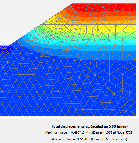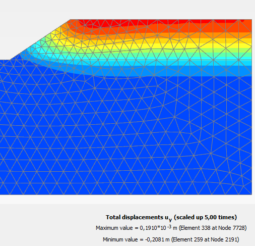 Вертикальные перемещения на первой стадии в PLAXIS 2D