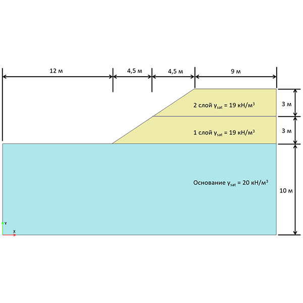 1 | γ_unsat | 20 кН/м³ | 19 кН/м³ | удельный вес в неводонасыщенном состоянии | |
